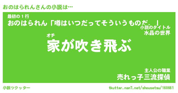 | 男性向けラノベタイトル風あだ名 | 『おのはられんの憂鬱』 |