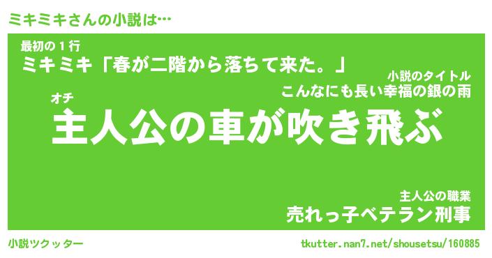 | 男性向けラノベタイトル風あだ名 | 『ミキミキの憂鬱』 |