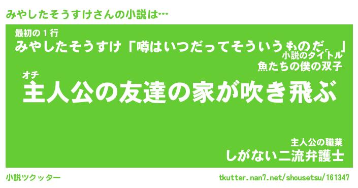 | 男性向けラノベタイトル風あだ名 | 『みやしたそうすけの憂鬱』 |