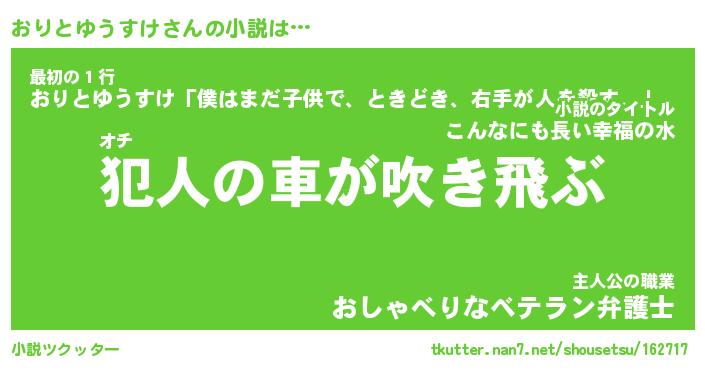 | 胡散臭い通販商品みたいなあだ名 | 『億万長者になれる霊験あらたかなお札…その名も「おりとゆうすけ」』 |