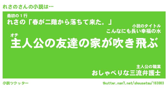 | 男性向けラノベタイトル風あだ名 | 『れさのの憂鬱』 |