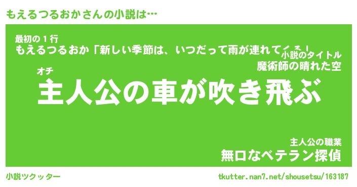 | 男性向けラノベタイトル風あだ名 | 『もえるつるおかの憂鬱』 |