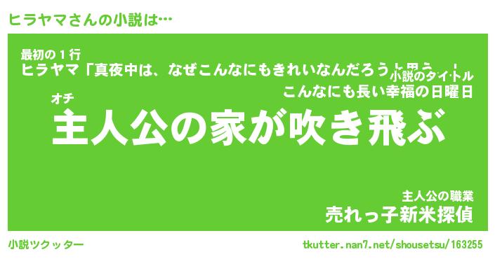 | 胡散臭い通販商品みたいなあだ名 | 『必ず成功するブレスレット…その名も「ヒラヤマ」』 |