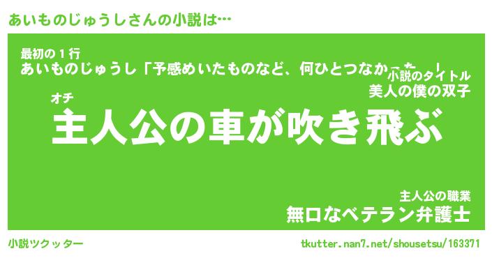 | 男性向けラノベタイトル風あだ名 | 『あいものじゅうしの憂鬱』 |