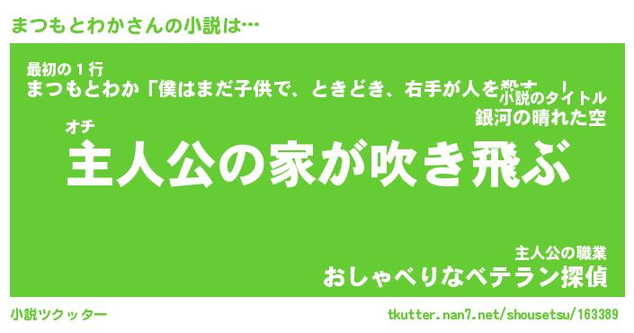 | 男性向けラノベタイトル風あだ名 | 『まつもとわかの憂鬱』 |