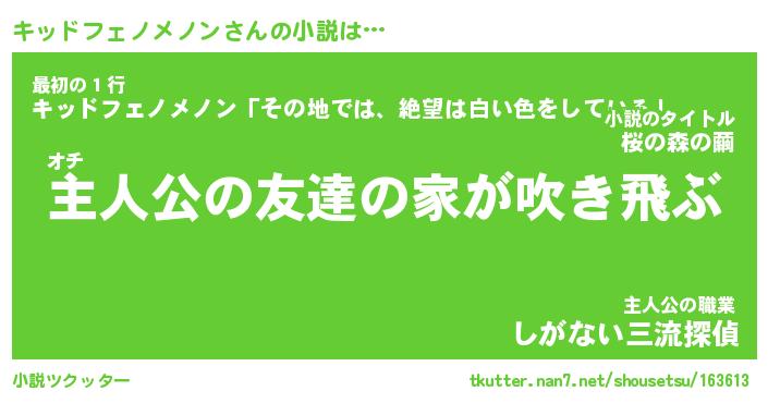 | 男性向けラノベタイトル風あだ名 | 『キッドフェノメノンアートオンライン』 |