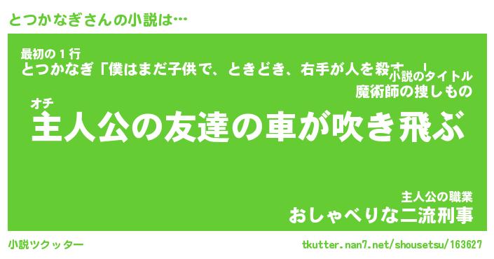 | 男性向けラノベタイトル風あだ名 | 『トツカナギアートオンライン』 |