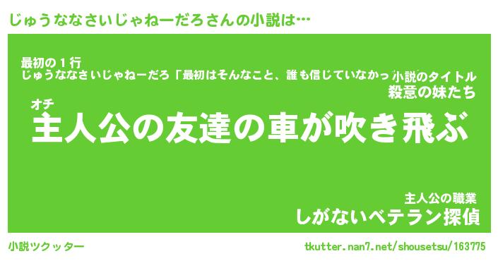| ツイッター | じゅうななさいじゃねーだろさんのツイッターID『dendenmushi_idle』 |