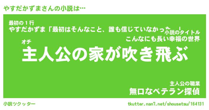 | 男性向けラノベタイトル風あだ名 | 『やすだかずまの憂鬱』 |
