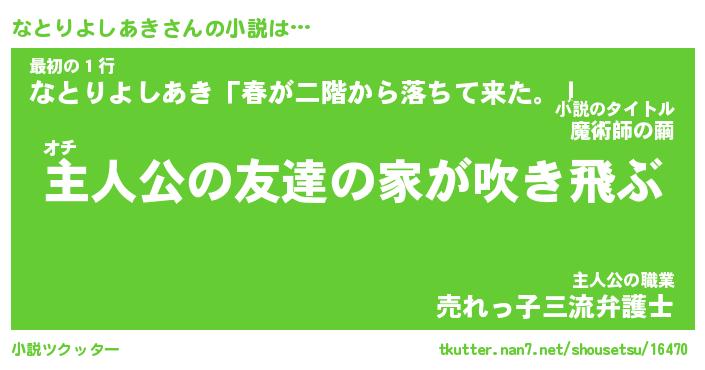 | 男性向けラノベタイトル風あだ名 | 『なとりよしあきの憂鬱』 |
