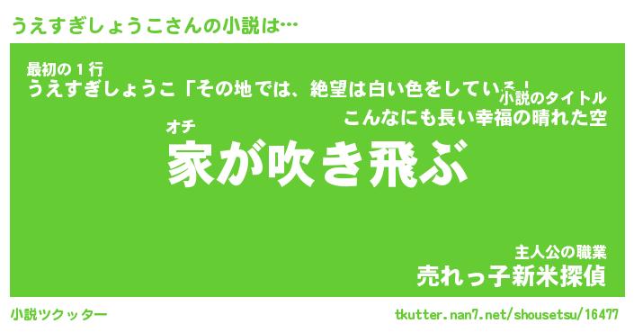 | 胡散臭い通販商品みたいなあだ名 | 『必ず成功するブレスレット…その名も「うえすぎしょうこ」』 |