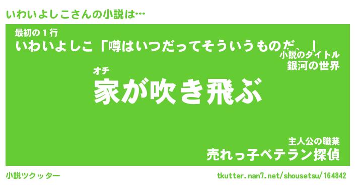 | 胡散臭い通販商品みたいなあだ名 | 『必ず成功するブレスレット…その名も「いわいよしこ」』 |
