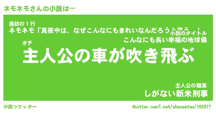 | 胡散臭い通販商品みたいなあだ名 | 『モテモテ間違いなし霊験あらたかなお札…その名も「ネモネモ」』 |