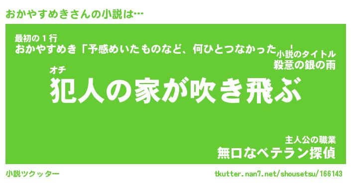 | 魚たちの銀の雨WW …「ケモノ」 | 10月27日 05:47 |