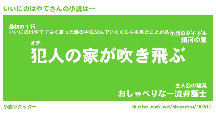 | 胡散臭い通販商品みたいなあだ名 | 『億万長者になれるブレスレット…その名も「いいにのはやて」』 |