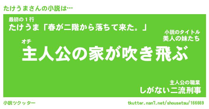| 男性向けラノベタイトル風あだ名 | 『たけうまの憂鬱』 |