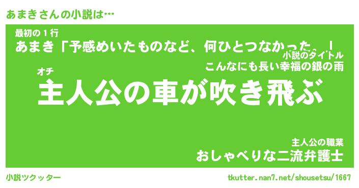 | 魚たちの銀の雨WW …「ケモノ」 | 10月27日 05:47 |