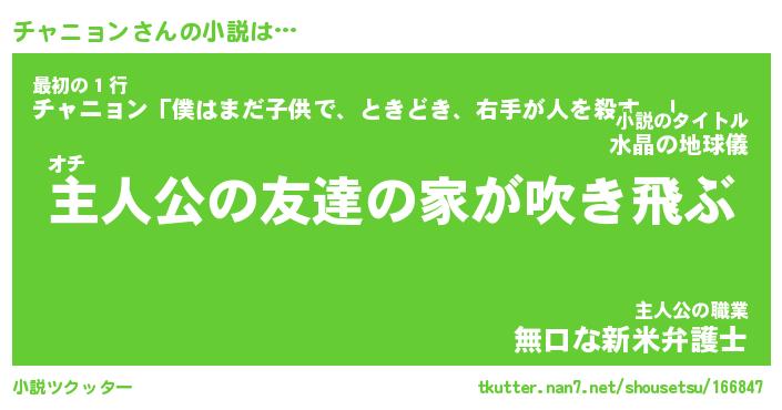 | 胡散臭い通販商品みたいなあだ名 | 『モテモテ間違いなし水晶球…その名も「チャニョン」』 |