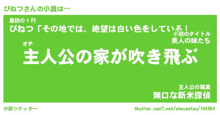 | 胡散臭い通販商品みたいなあだ名 | 『必ず成功する水晶球…その名も「びねつ」』 |