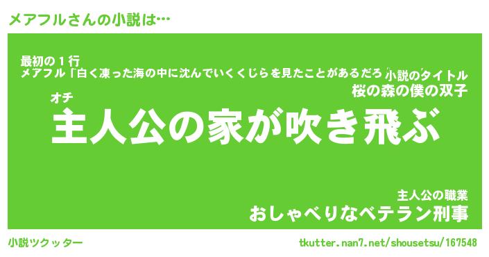 | 男性向けラノベタイトル風あだ名 | 『メアフルの憂鬱』 |