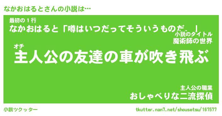| 男性向けラノベタイトル風あだ名 | 『ナカオハルトアートオンライン』 |