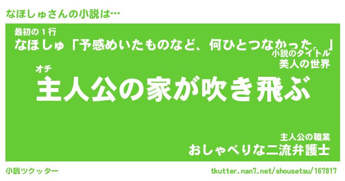 | 胡散臭い通販商品みたいなあだ名 | 『必ず成功するブレスレット…その名も「なほしゅ」』 |