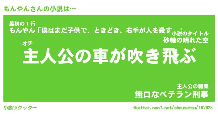 | 男性向けラノベタイトル風あだ名 | 『もんやんの憂鬱』 |