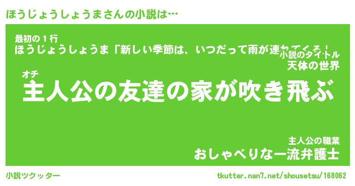 | 男性向けラノベタイトル風あだ名 | 『ほうじょうしょうまの憂鬱』 |