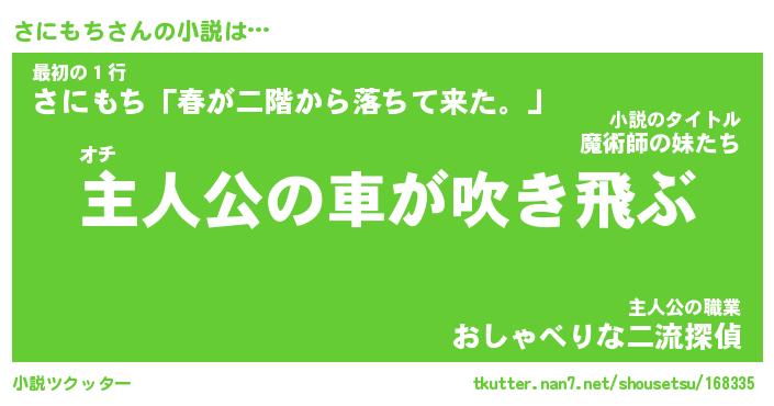 | 男性向けラノベタイトル風あだ名 | 『さにもちの憂鬱』 |