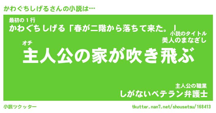 | 胡散臭い通販商品みたいなあだ名 | 『必ず成功する霊験あらたかなお札…その名も「かわぐちしげる」』 |