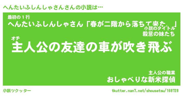 | 肩書あだ名 | 『へんたいふしんしゃさん御曹司』 |