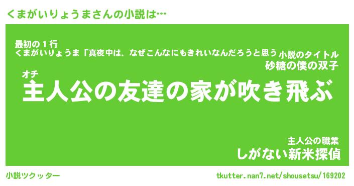 | 男性向けラノベタイトル風あだ名 | 『クマガイリョウマアートオンライン』 |