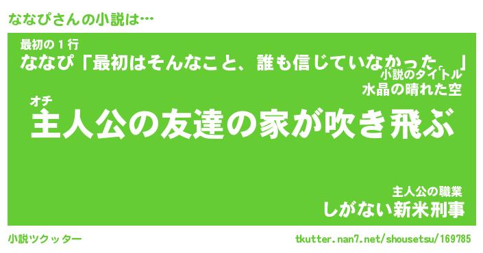 | 男性向けラノベタイトル風あだ名 | 『ななぴの憂鬱』 |