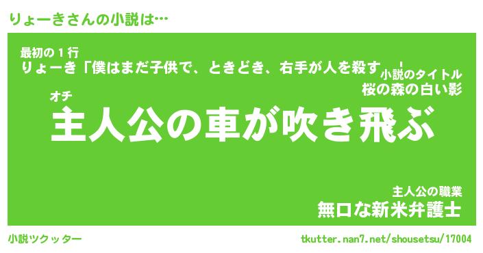 | 男性向けラノベタイトル風あだ名 | 『りょーきの憂鬱』 |