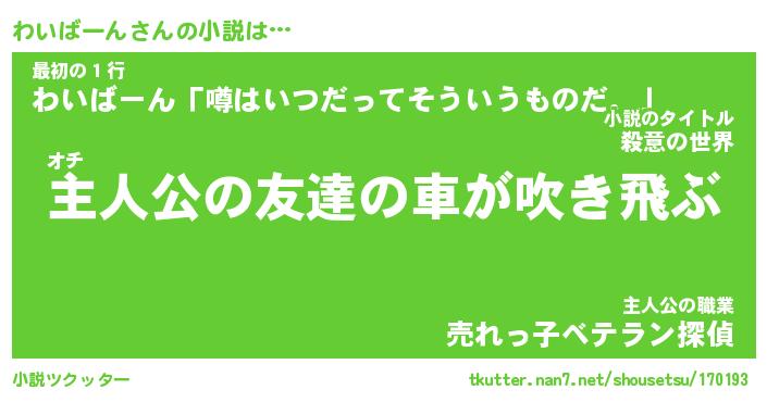 | 魚たちの銀の雨WW …「ケモノ」 | 10月27日 05:47 |