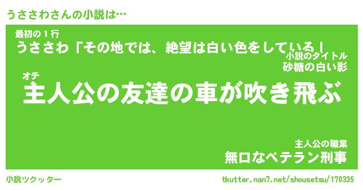 | 男性向けラノベタイトル風あだ名 | 『ウササワアートオンライン』 |