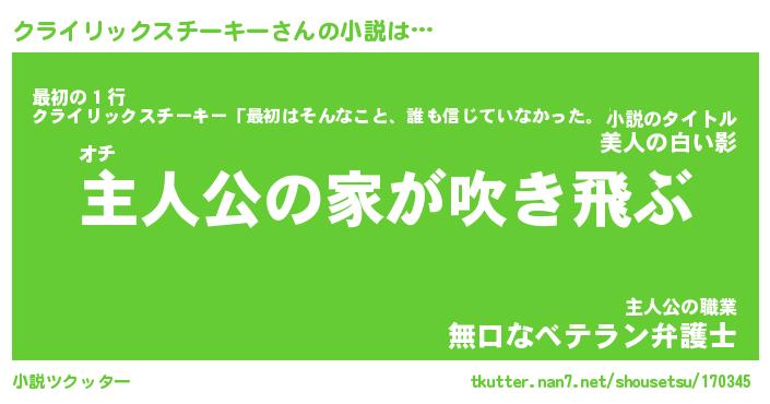 | 男性向けラノベタイトル風あだ名 | 『クライリックスチーキーの憂鬱』 |