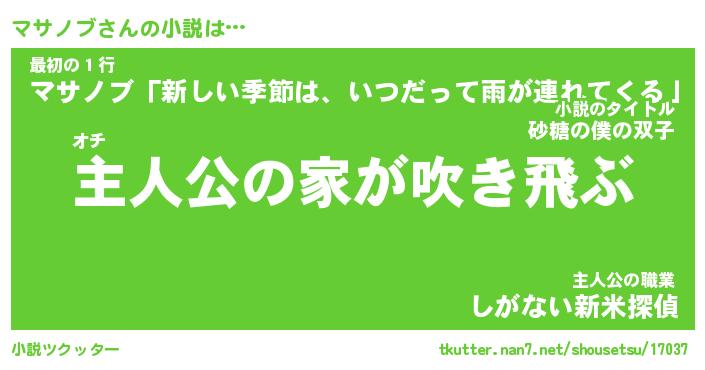 | 男性向けラノベタイトル風あだ名 | 『マサノブの憂鬱』 |