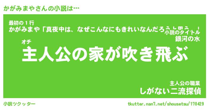 | 胡散臭い通販商品みたいなあだ名 | 『必ず成功するブレスレット…その名も「かがみまや」』 |