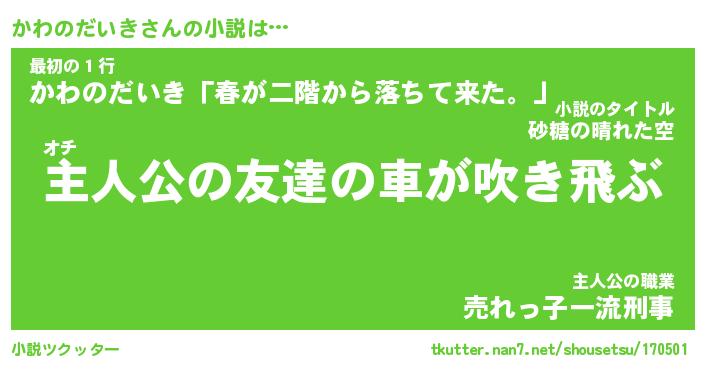 | 肩書あだ名 | 『かわのだいき御曹司』 |