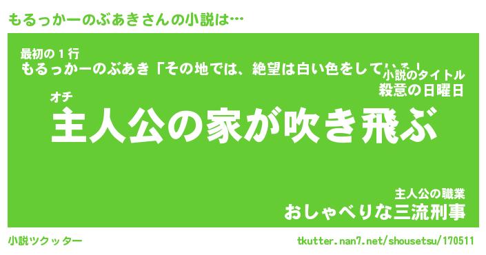 | 男性向けラノベタイトル風あだ名 | 『もるっかーのぶあきの憂鬱』 |