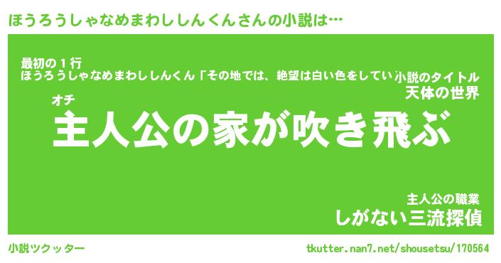 | 女子向けラノベタイトル風あだ名 | 『(仮)ほうろうしゃなめまわししんくんのやんごとなき事情』 |