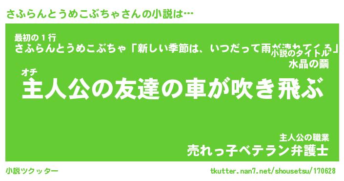 | 胡散臭い通販商品みたいなあだ名 | 『モテモテ間違いなし霊験あらたかなお札…その名も「さふらんとうめこぶちゃ」』 |