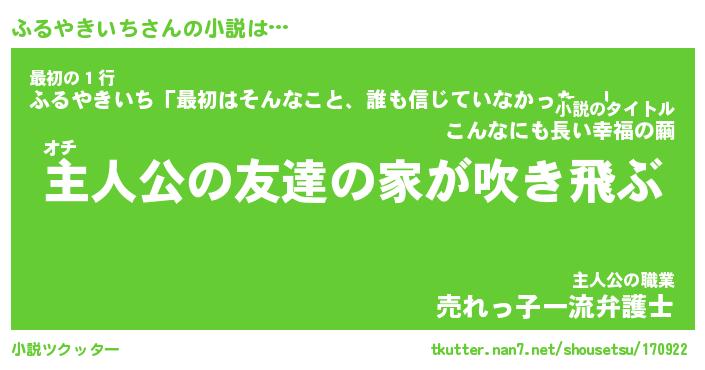 | 男性向けラノベタイトル風あだ名 | 『ふるやきいちの憂鬱』 |