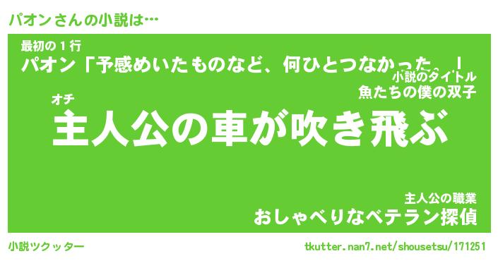 | 男性向けラノベタイトル風あだ名 | 『パオンの憂鬱』 |