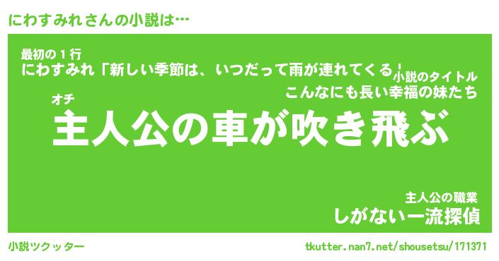 | 男性向けラノベタイトル風あだ名 | 『にわすみれの憂鬱』 |