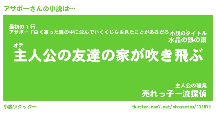 | 魚たちの銀の雨WW …「ケモノ」 | 10月27日 05:47 |