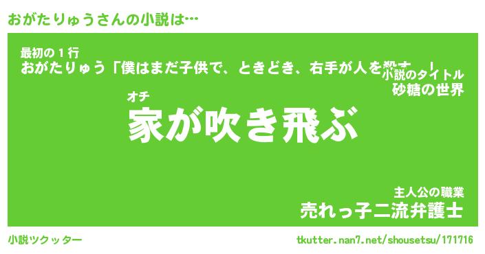 | 男性向けラノベタイトル風あだ名 | 『おがたりゅうの憂鬱』 |