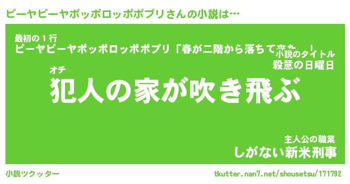 | 胡散臭い通販商品みたいなあだ名 | 『億万長者になれるブレスレット…その名も「ピーヤピーヤポッポロッポポプリ」』 |