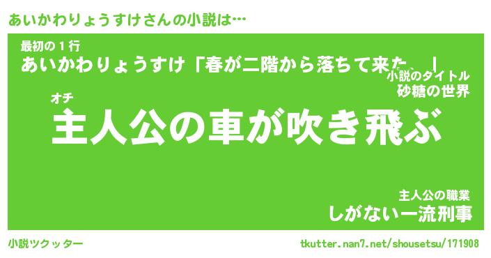 | 肩書あだ名 | 『あいかわりょうすけ御曹司』 |